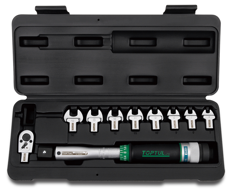 Ключ динамометрический 9x12мм 6-30 Нм с рожковыми насадками 7-14 мм 10 предметов TOPTUL GAAI1001 купить в Чита и других городах России