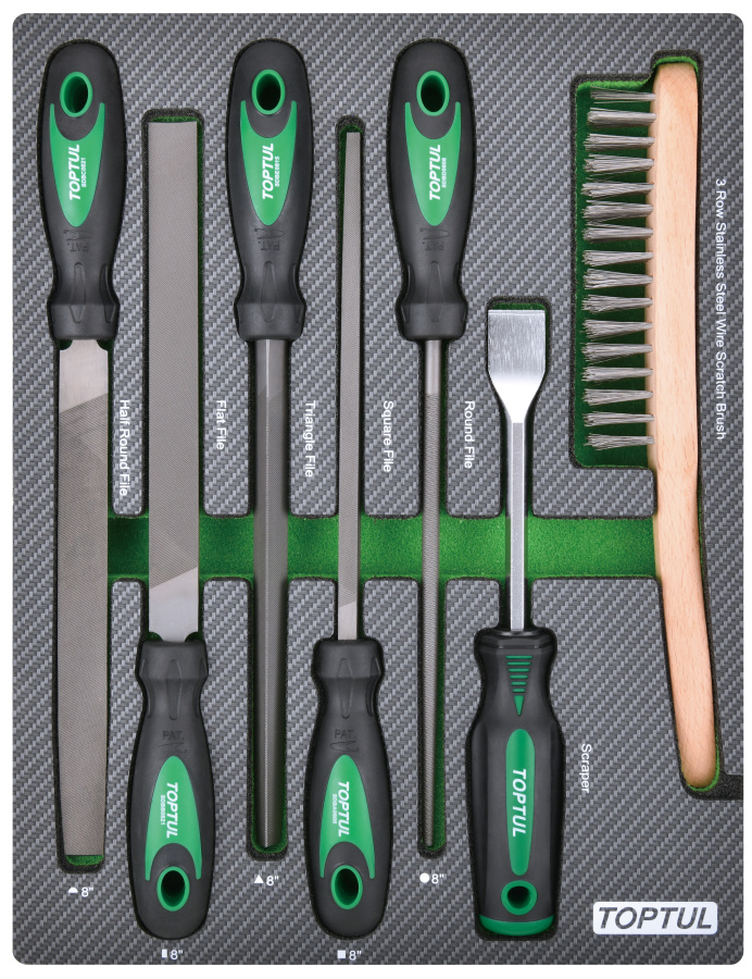 Набор инструментов, напильники, шабер и щетка, 7 пр. в мягком ложементе TOPTUL GEB0705 купить в Чита и других городах России