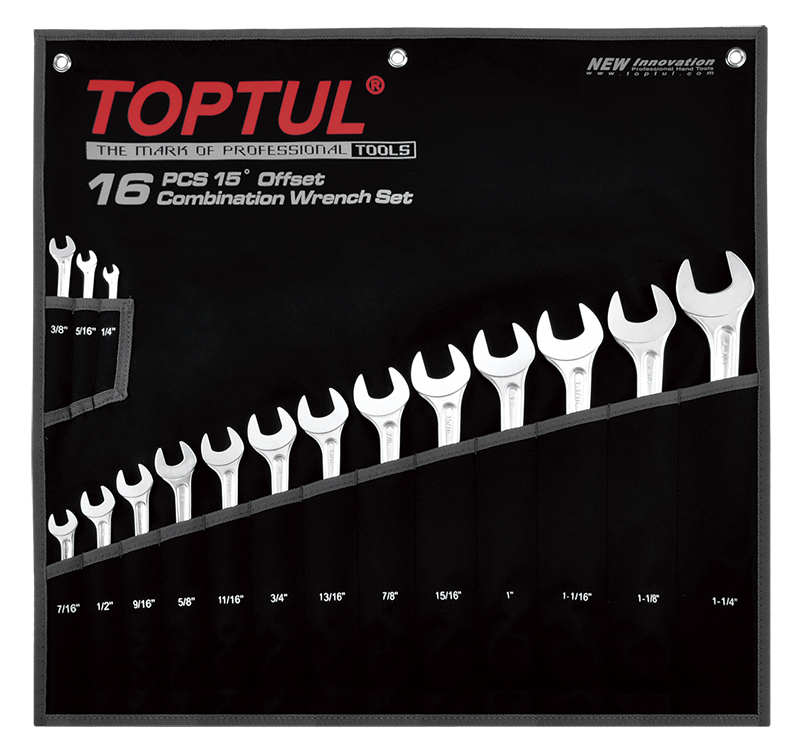 Набор ключей комбинированных дюймовых 1/4"-1-1/4", 16 предметов на полотне TOPTUL GPBX1601 купить в Чита и других городах России