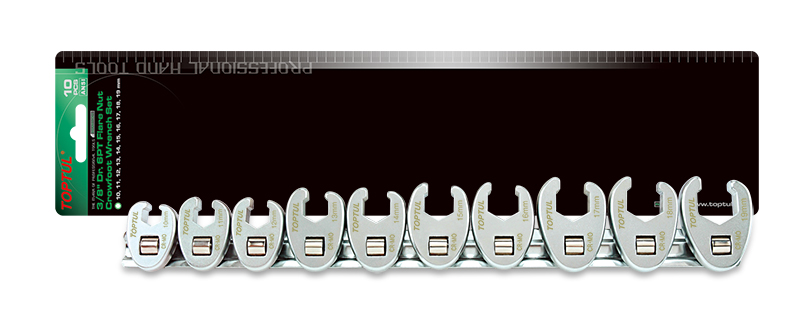 Набор ключей "воронья лапа" 3/8" 10-19 мм, 10 предметов на планке TOPTUL