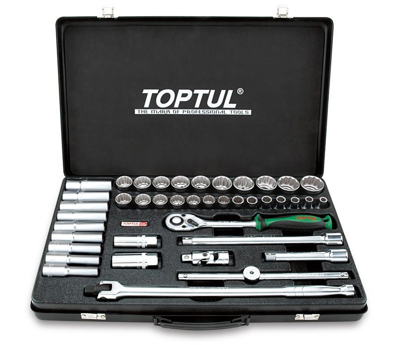 Набор головок и аксессуаров 1/2" 12-гранных 8-32 мм, 41 предмет в метал. кейсе TOPTUL GCAD4103 купить в Чита и других городах России