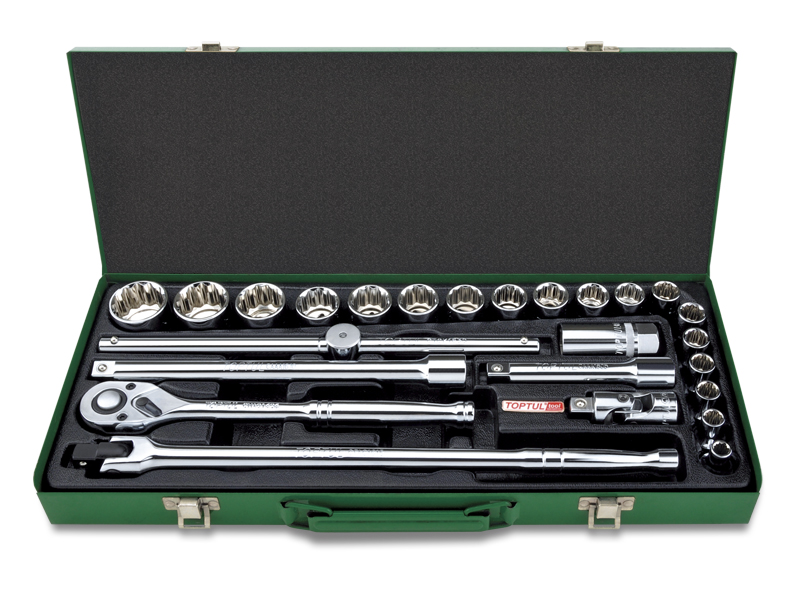 Набор головок и аксессуаров 1/2" 12-гранных дюймовых 5/16"-1-1/4", 25 предметов в метал.кейсе TOPTUL GCAD2514 купить в Чита и других городах России