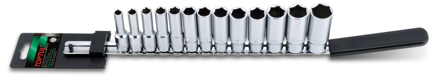 Набор удлиненных 6-гранных головок 3/8" на клип-планке 7-21 мм 13 предметов TOPTUL