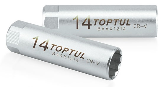 Головка свечная 12-гранная 3/8" 14 мм L=63 мм с пружинным фиксатором TOPTUL BAAX1214 купить в Чита и других городах России