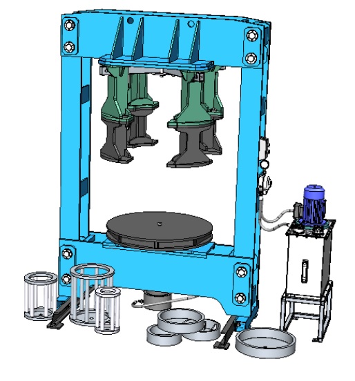 Пресс шиномонтажный электрогидравлический для цельнолитых шин погрузчика 120т. портальный.